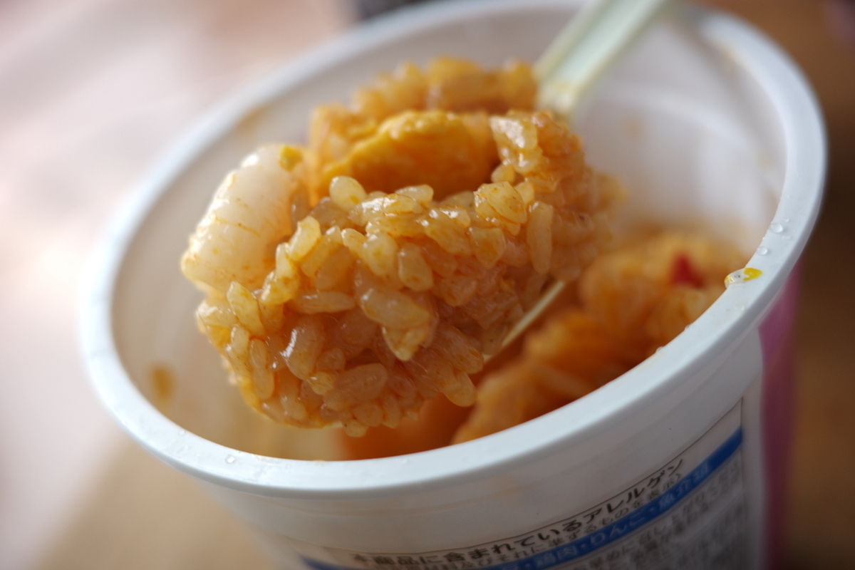 2022-10-24 トムヤムクンライス。「セブンイレブン」 【Food】百貨店スーパーコンビニ・通販・その他 買った記憶がないものが冷凍庫にあった。ツマはこう言うものは買わないし、小学生のムスコが買うはずがない。酔った帰りに僕が買ったんだろう。 チンしました。なんか、少ないすね。食べました。ま、確かにトムヤムクンライスやね。